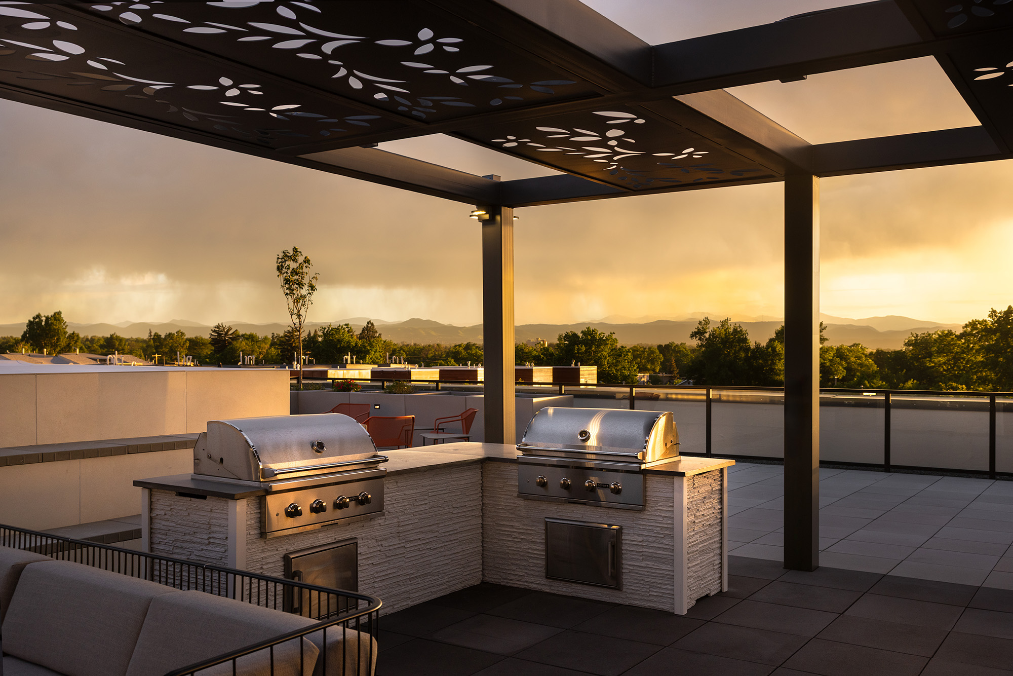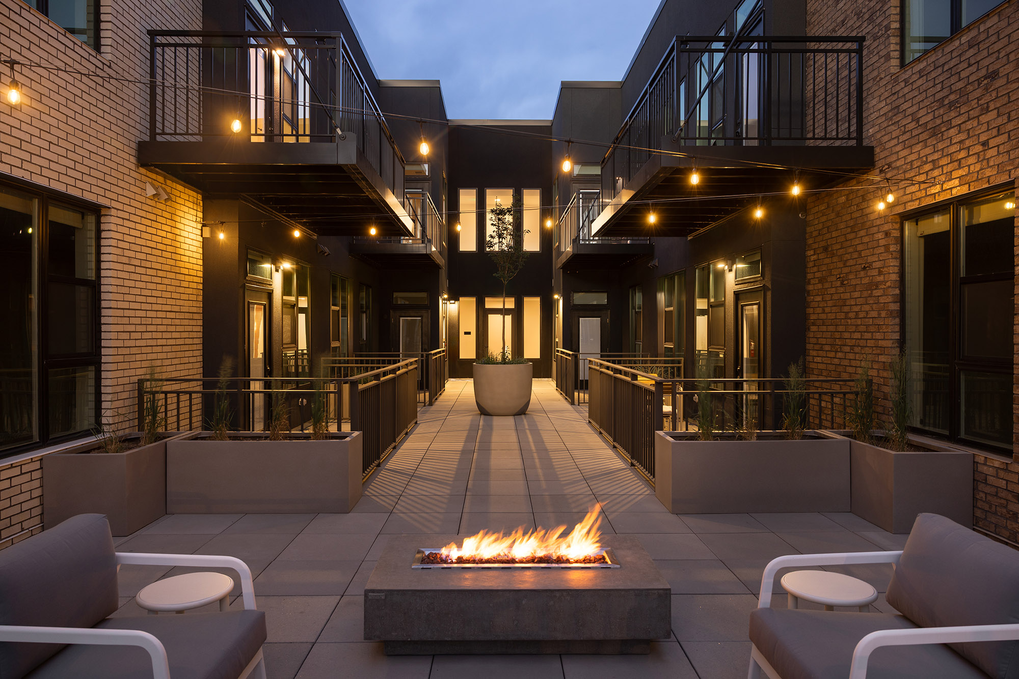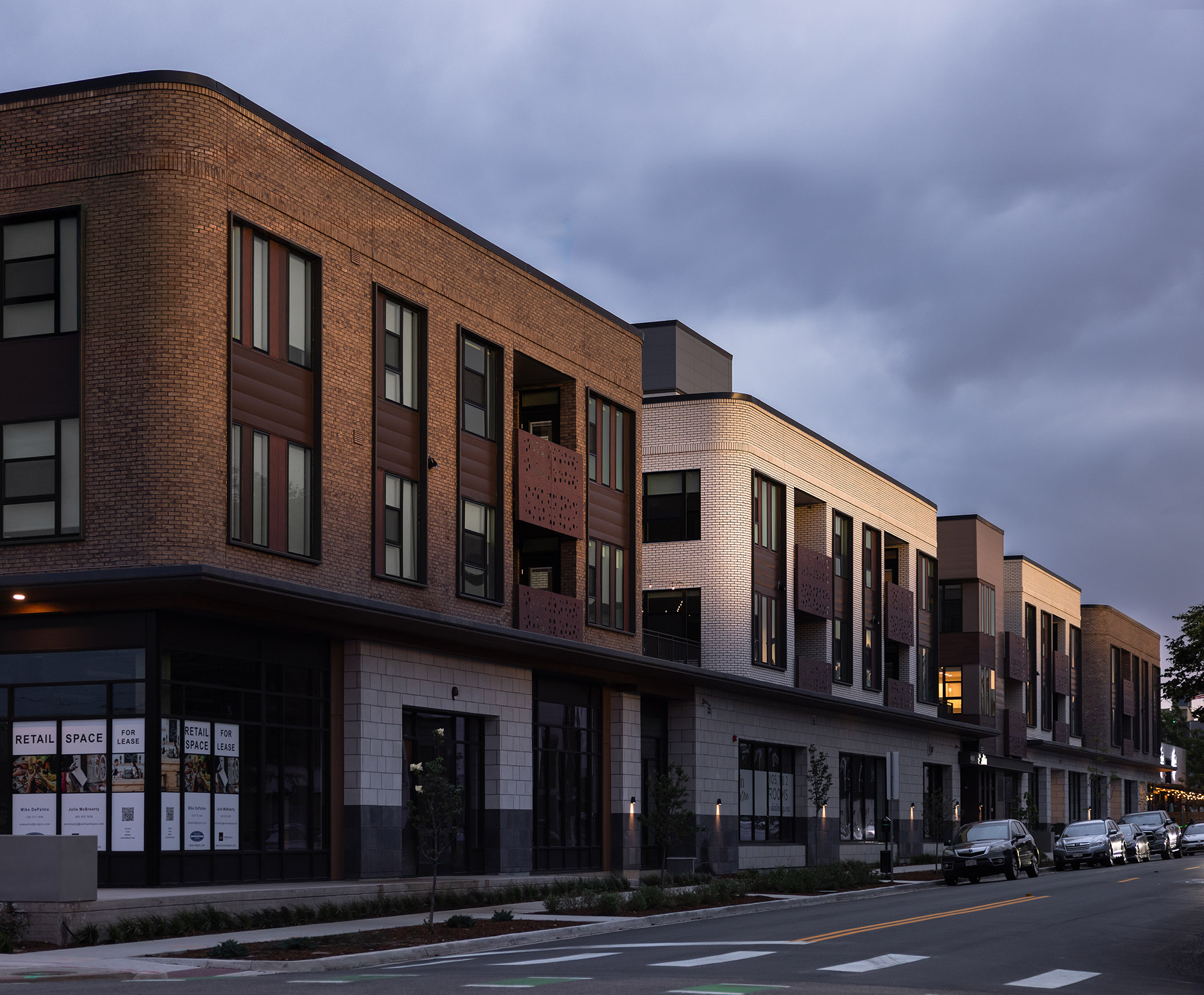 In Northwest Denver’s iconic Berkeley neighborhood, an exceptional mix-used development is in the works at the intersection of 46th & Tennyson. The eye-catching curved brick corners and the choice of materials harken back to the historic architecture found in Denver’s many commercial centers, of which the Tennyson Street corridor is a prime example. Three courtyards overlooking the street are introduced to break the long building into four human scaled masses. The courtyards also maximize views and solar access for the dwelling units and introduce fingers of usable green space into the building. The ground floor frontage is populated with active commercial uses and generous open space is provided between the façade and the sidewalk along 46th Ave to animate and activate street life. The residents will enjoy an amenity saturated roof deck with spectacular views of the Rockies, Berkeley Lake, and Downtown Denver.